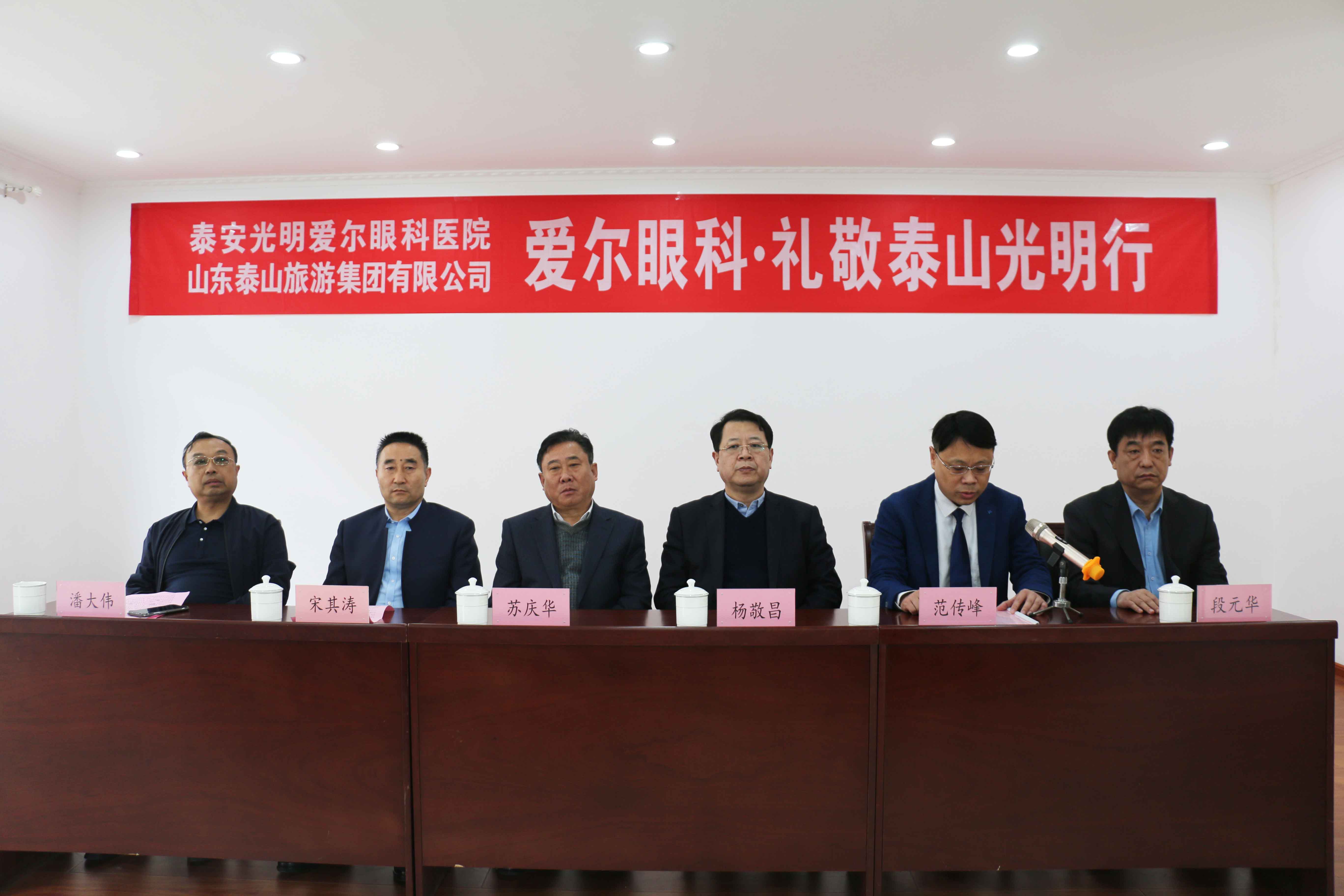 ? ? ? ? 3月26日上午,由山東泰山旅游集團(tuán)有限公司與泰安光明愛爾眼科醫(yī)院聯(lián)合開展的“愛爾眼科?禮敬泰山光明行”活動正式啟動。旅游集團(tuán)黨委書記、董事長蘇慶華,旅游集團(tuán)黨委委員、副總經(jīng)理潘大偉,景區(qū)客運(yùn)公司董事長、總經(jīng)理宋其濤,泰安光明愛爾眼科醫(yī)院CEO楊敬昌,院長范傳峰,行政副院長段元華以及泰山旅游集團(tuán)近70名職工參加啟動儀式。
