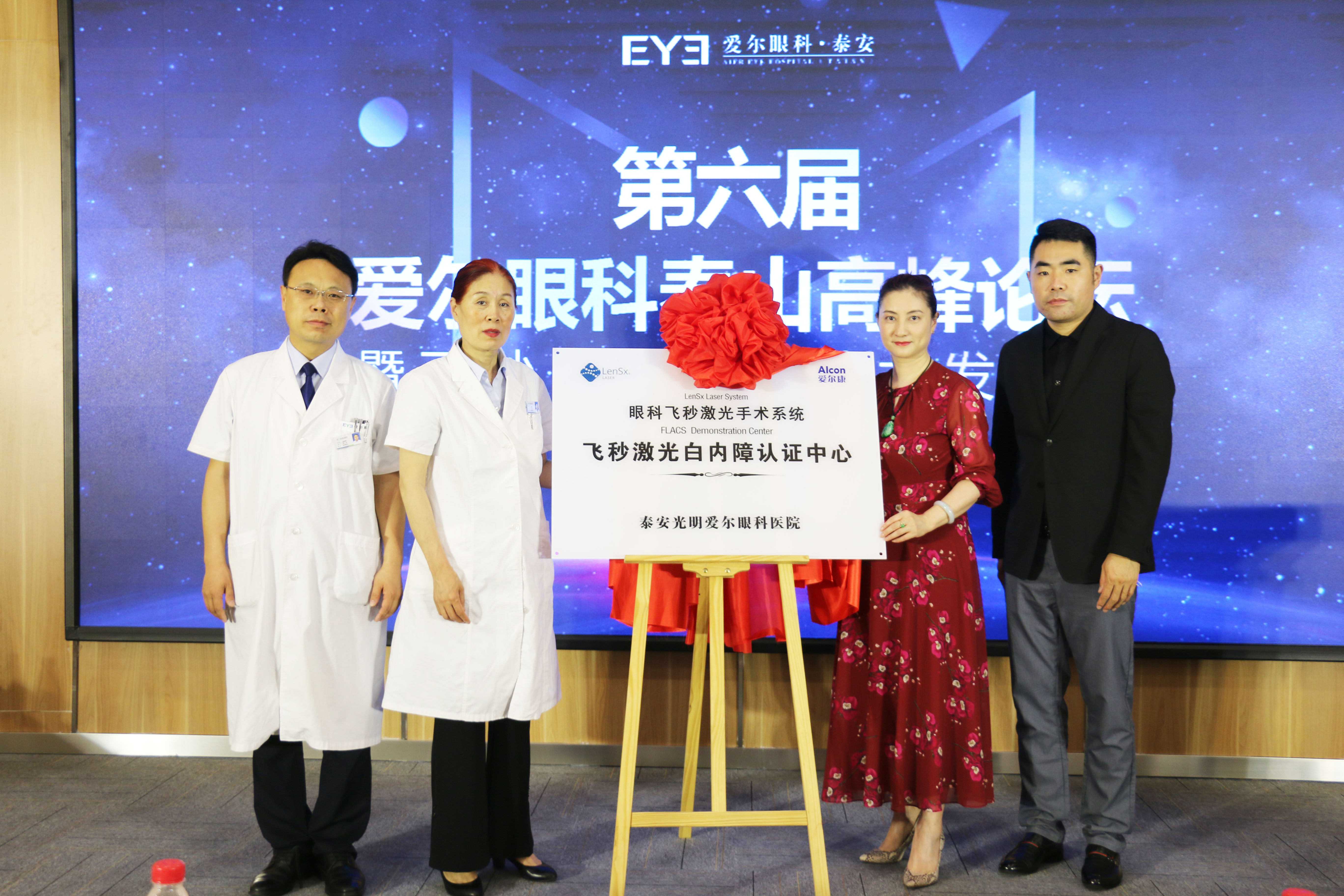 ? ? ? ? 23日下午,眼科專家們齊聚泰安光明愛爾眼科醫(yī)院,在各位業(yè)界大咖的見證下,Alcon ?LENSX ?LASER飛秒白內(nèi)障設(shè)備正式亮相,泰安光明愛爾眼科醫(yī)院范傳峰院長、李愛華副院長從愛爾康公司大區(qū)經(jīng)理謝群女士、地區(qū)經(jīng)理邵明強先生手中接過認證牌匾,“飛秒激光白內(nèi)障認證中心”正式落地泰安光明愛爾眼科醫(yī)院。